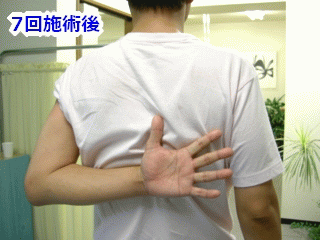 | 脱臼骨折後の肩の動きの制限 整体前 | 脱臼骨折後の肩の動きの制限 整体後 |